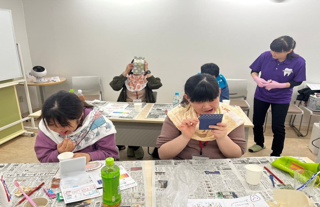 2回に渡って行った講座では、1回目に「歯の健康と病気のリスク」に関する講座、2回目に正しい歯磨き方法を体験する「歯磨き講座」を行いました。