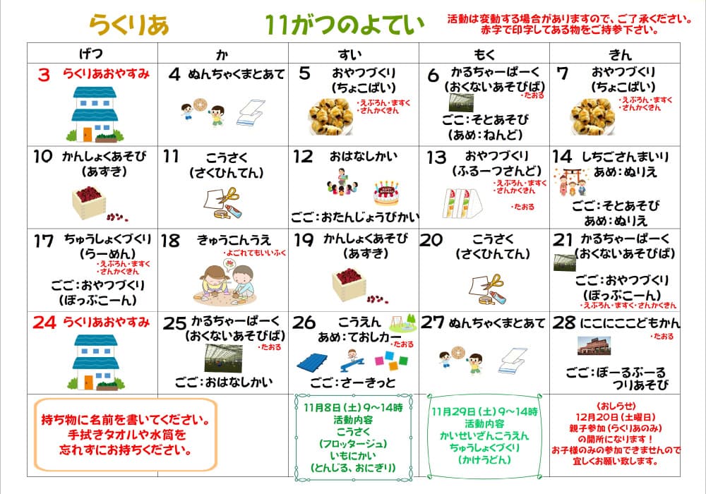 11月予定表/らくりあ