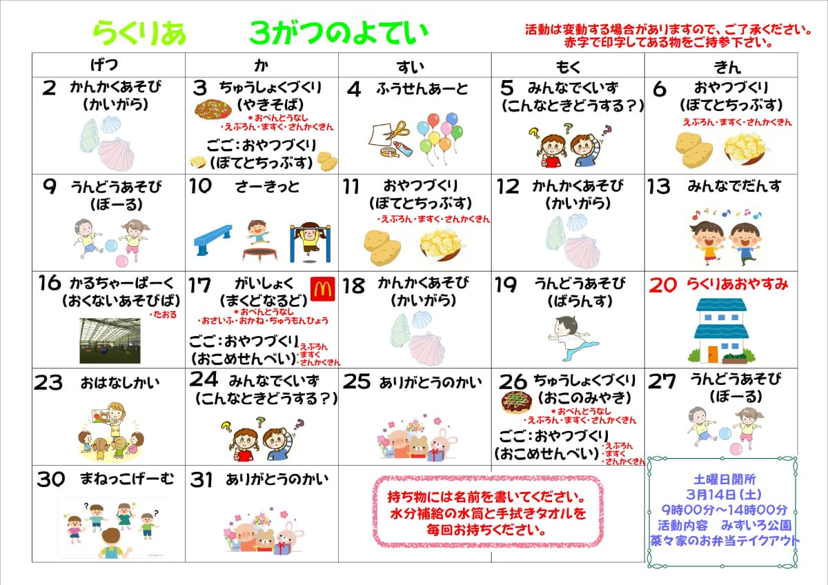 3月予定表/らくりあ