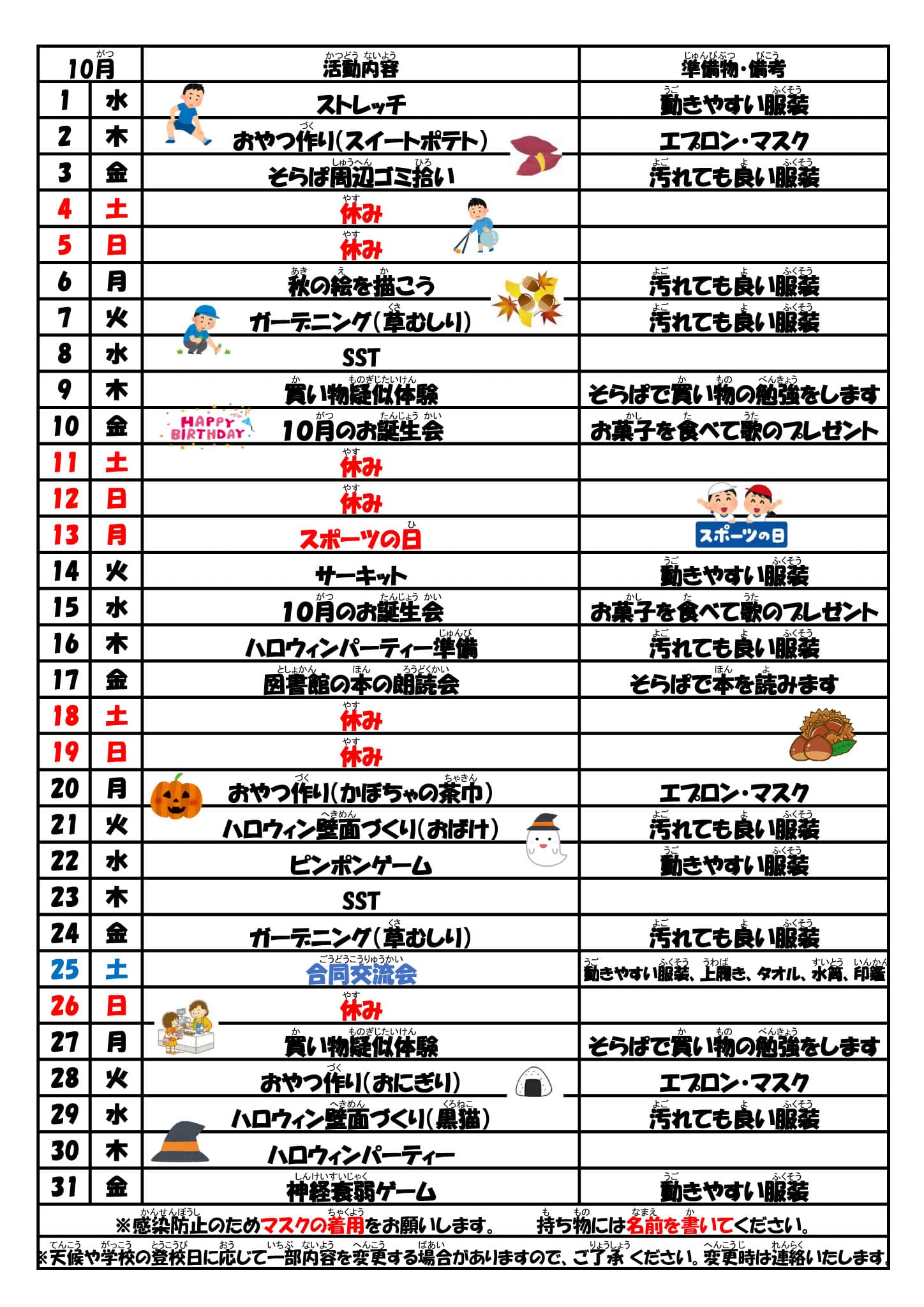 10月予定表/そらぱ